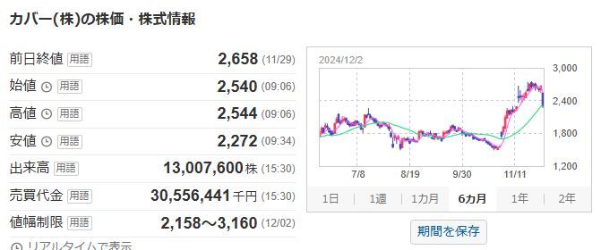 管理人コメント:さすがに今日は株価が下がりましたね。株価下落に反省して、運営にはホロライブメンバーを働かせすぎないように気を付けてほしいですね
